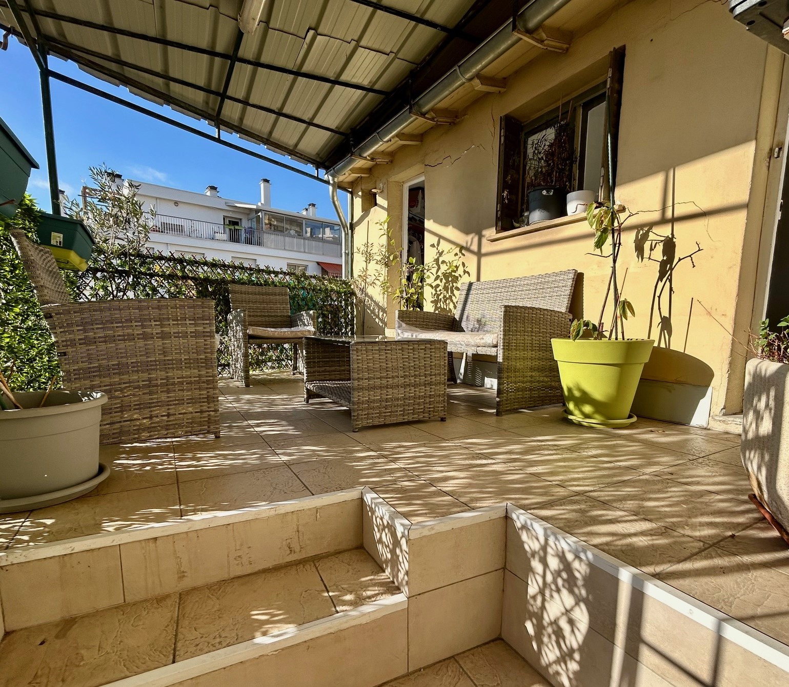 - EXCLUSIVITE - Nice dans le bas de l'avenue de Gairaut à deux pas de la Place Fontaine du Temple. Appartement 3P d'environ 72 m2 avec terrasse et jardin. En excellent etat il se compose d'un beau sejour, une cuisine separée, deux chambres, une grande salle d'eau, un dressing, une buanderie et un wc independant. L'appartement exposé Sud-Ouest se trouve en rez de chaussée surelevé et beneficie d'un beau jardin privatif accessible par les escaliers en face du sejour. On trouve egalement une belle terrasse aménagée attenante à la cuisinel. Au calme total à seulement 250 metres du Marché Ray-Gorbella et de l'arret du Tram. Une cave complete ce bien. Idealement situé proche des commerces, des ecoles et du Tram.